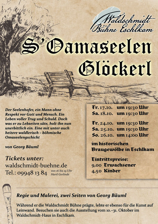 Wir bedanken uns herzlich für das Interesse an „S’ Oamaseelen Glöckerl“. Sämtliche Aufführungen sind bereits ausverkauft. Auf gut Glück können an der Abendkasse noch vereinzelt Plätze verfügbar sein.